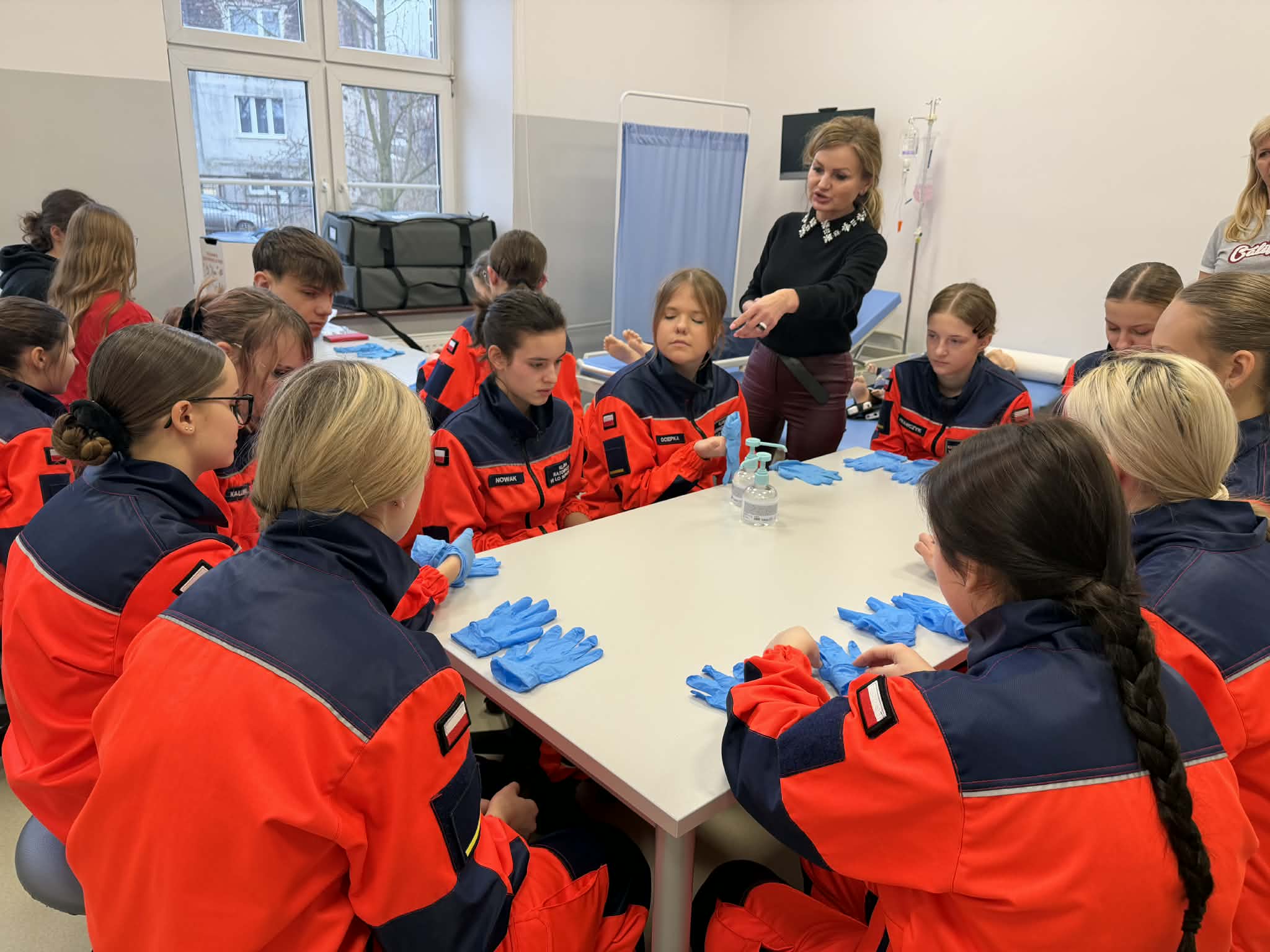 Uczniowie klas ratowniczo-medycznych uczestniczyli dziś w zajęciach z pielęgniarstwa. Nauczyli się prawidłowego mycia i odkażania rąk oraz opatrywania ran czystych i zanieczyszczonych. Mieli też okazję poćwiczyć zakładanie zgłębnika nosowo-jelitowego w celu żywienie dojelitowego, odbarczenia żołądka lub podania leków u pacjentów nieprzytomnych, z zaburzeniami połykania, czy po urazach i operacjach.